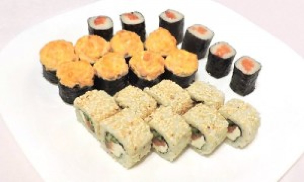 Запечённый ролл «Филадельфия», ролл «Калифорния гурмэ», Мини-ролл «Лосось»