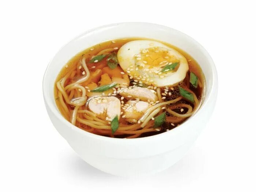 Мисо бульон,лапша удон,куриное яйцо,масло кунжутное,лук зелёный