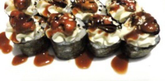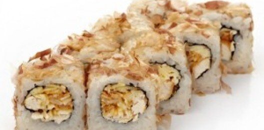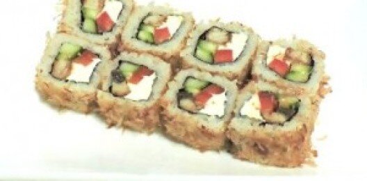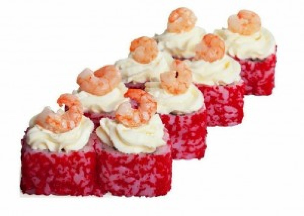 Креветка салатная, сливочный сыр, снежный краб, икра масаго, чили соус, рис, нори
