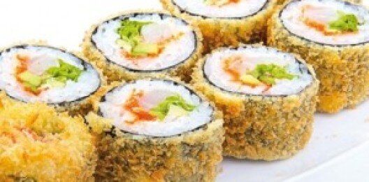 Ролл с копчёным угрём, лососем с/с и сливочным сыром, обжаренный в кляре и сухариках панко